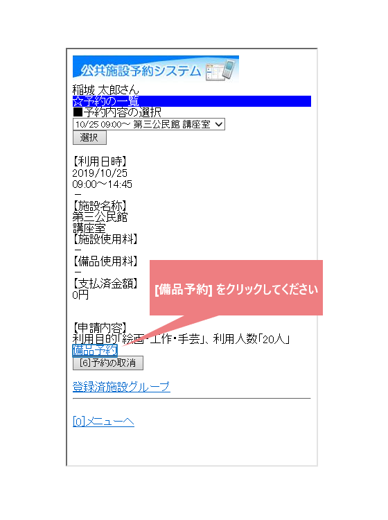 【予約・照会】予約申込の確認